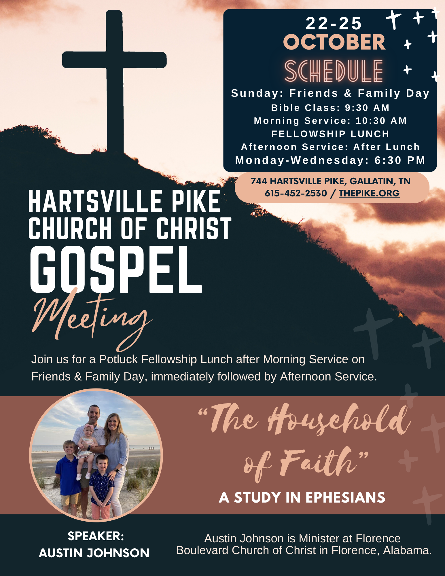 744 Hartsville Pike Gallatin, TN 37066 Directions Hartsville Pike Church of Christ October 22 – 25, 2023 Children, Community, Evangelism, Featured The Household of Faith: A Gospel Meeting with Austin Johnson Share this: Share on X (Opens in new window) X Share on Facebook (Opens in new window) Facebook Share on Pinterest (Opens in new window) Pinterest Email a link to a friend (Opens in new window) Email Like this:Like Loading... Related