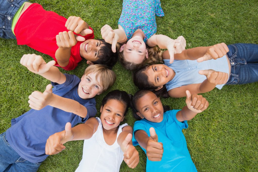Happy friends playing in the park