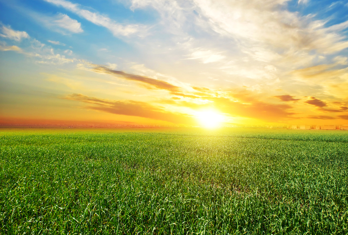 Sunset, sunrise, sun over rural countryside wheat field Sunset, sunrise, sun over rural countryside wheat field. Late spring, early summer May 18, 2018